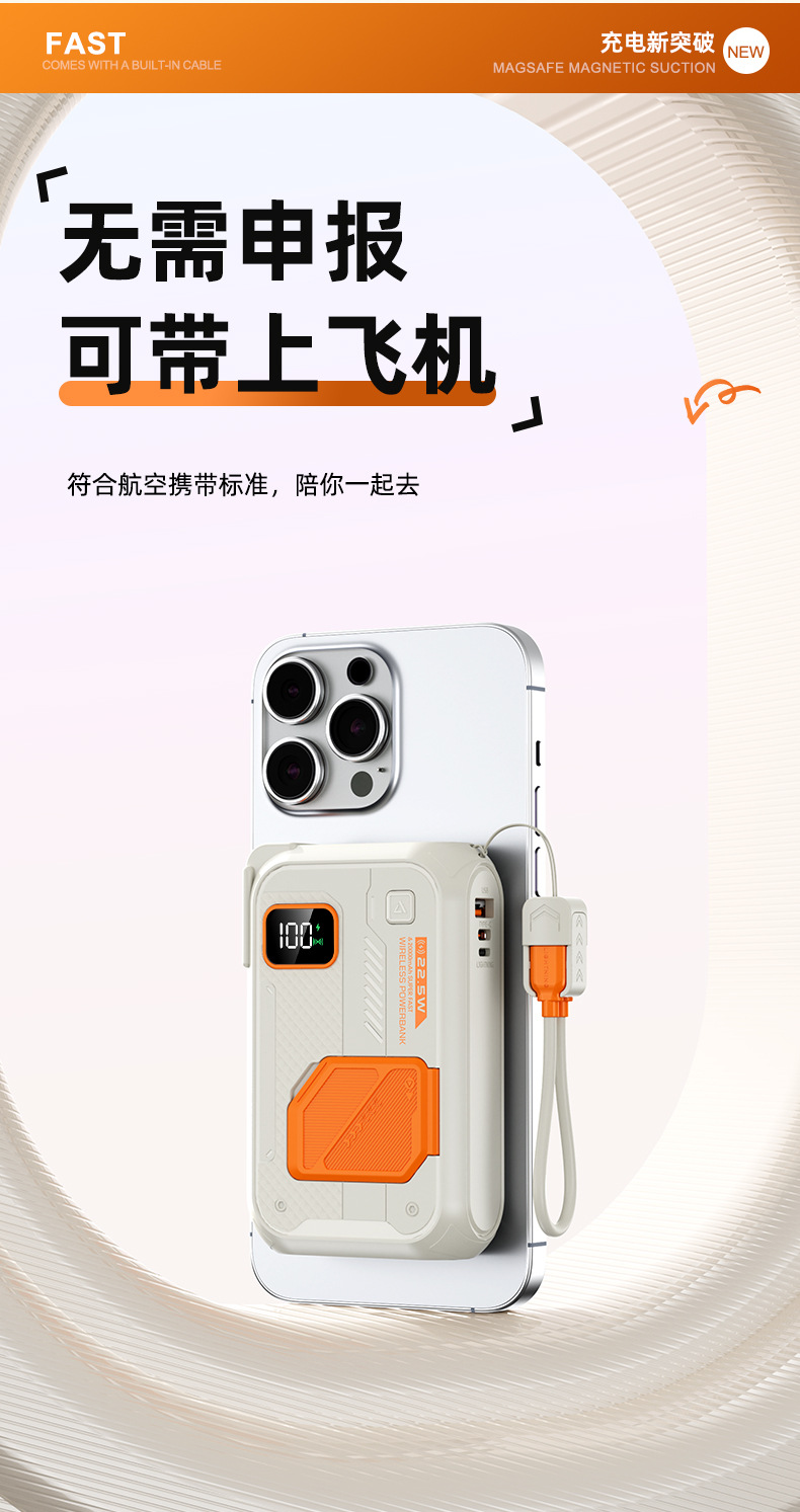 20000mAh Large Capacity Portable Charger with Built-in Cable Fast Charging Multi-Function Magnetic Wireless Power Bank