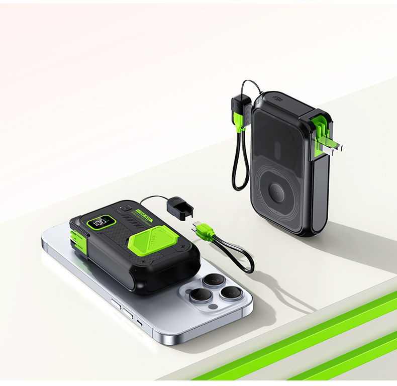 Features: Compact and Portable, Wireless Charging, With Hanging Hook, 3-in-1, Multi-Voltage, Comes with Data Cable, Power Bank and Charger Head 2-in-1