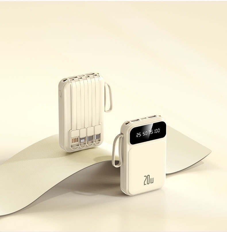 3C Certified Power Bank with Cable 20000mAh Large Capacity Airplane-Friendly Portable Mobile Power Supply