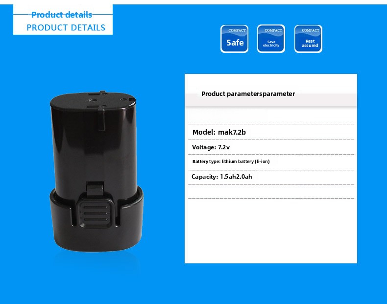 7.2VB BL7010 Electric Screwdriver Drill Screwdriver Power Tool Rechargeable Battery Suitable for Makita