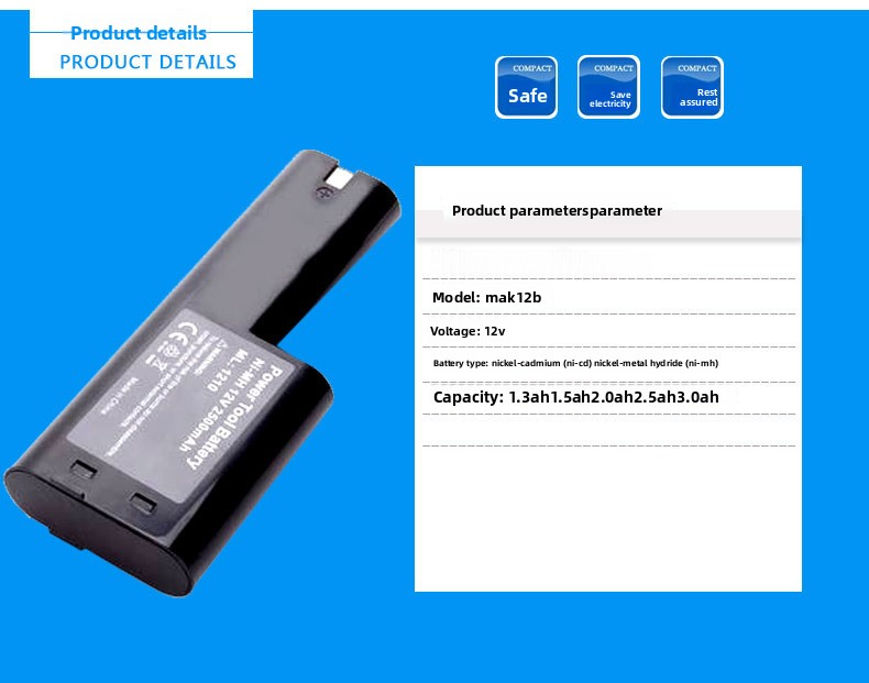 Detail      MAK-12(B) Fit Makita Tools: MAKITA 12 Volt Cordless Drill Power Tool 5092D 5092DW 6011D 6011DW Replace Original Makita Battery: 1210 632277-5 5092D 6011D 5092DW 6011D 6011DW 809432